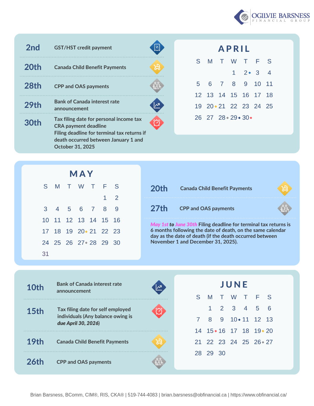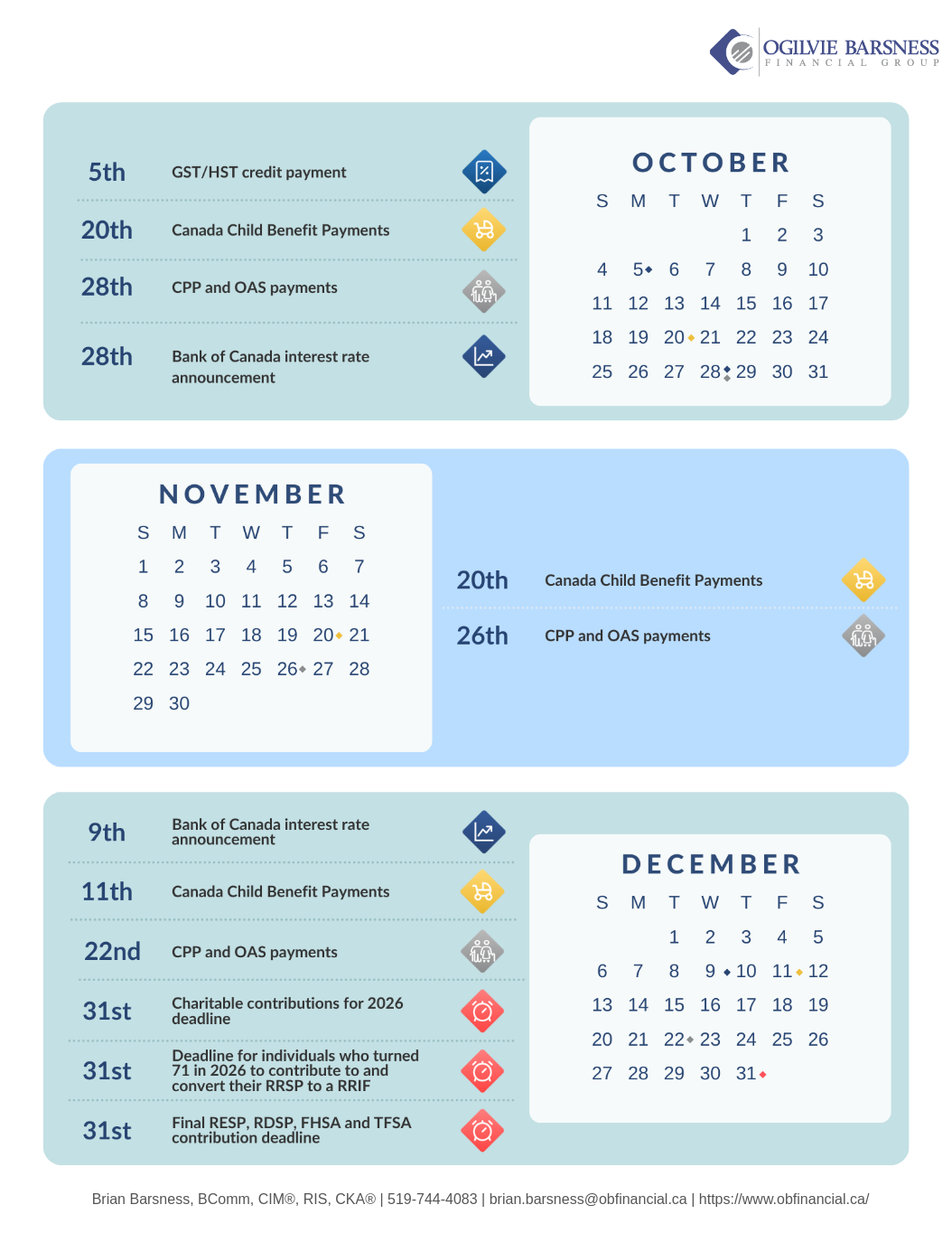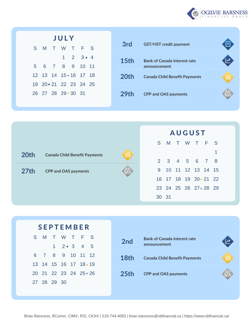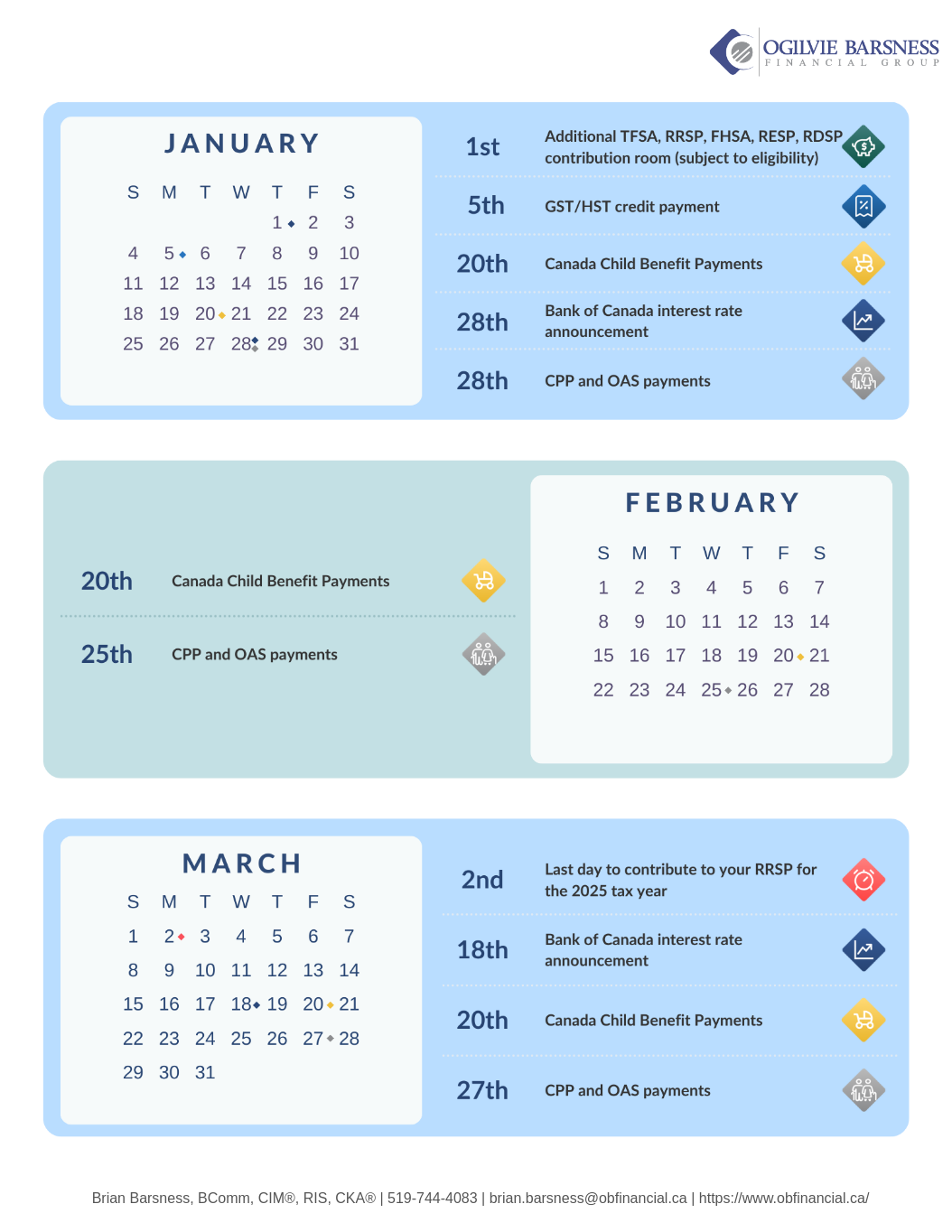 This calendar is designed to help you keep track of important financial dates and deadlines, such as tax filing and government benefit distribution. You can bookmark this page for easy reference or add these dates to your personal calendar so you don’t miss any important financial obligations.